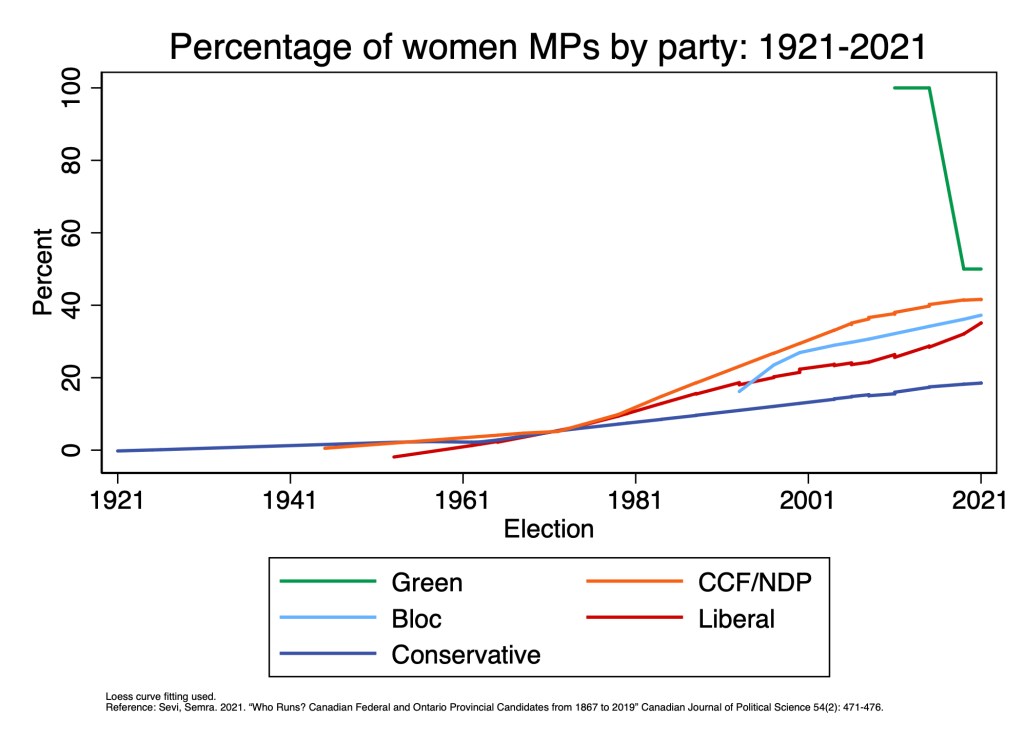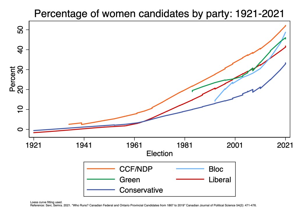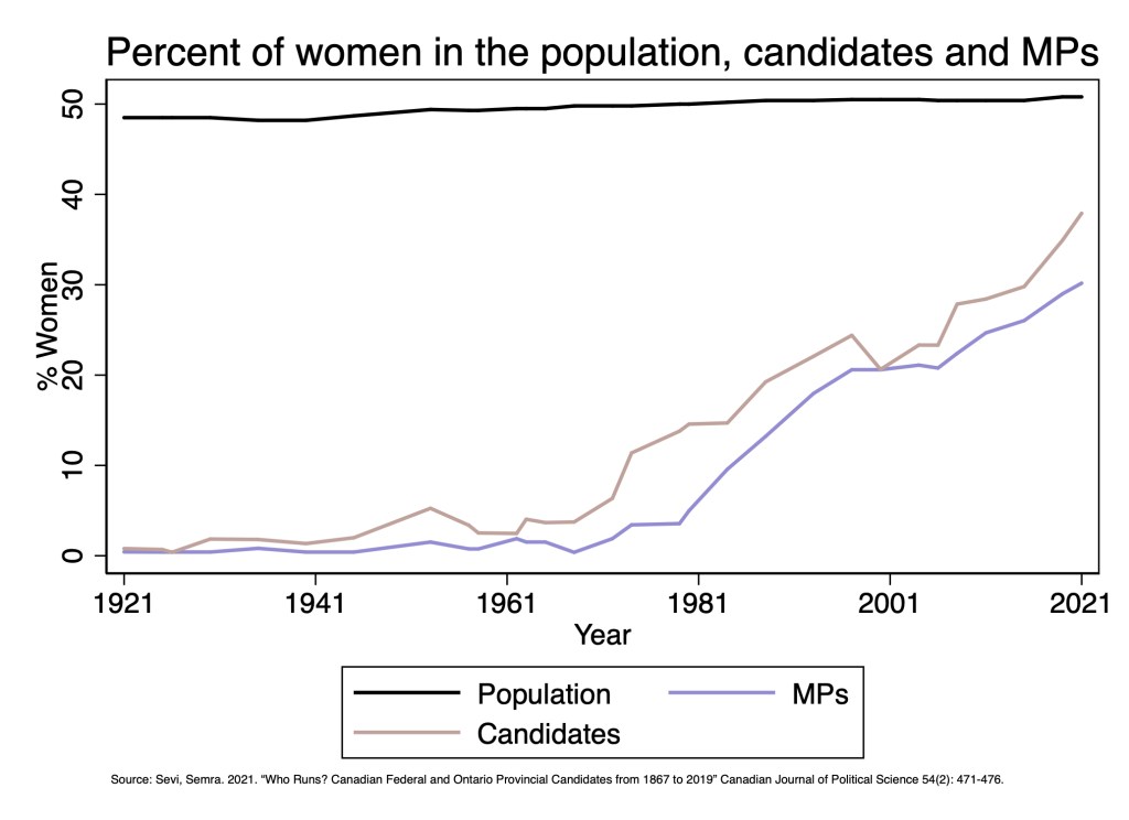 Johnson, Anna, Erin Tolley, Melanee Thomas, and Marc André Bodet. “A new dataset on the demographics of Canadian federal election candidates.” Canadian Journal of Political Science/Revue canadienne de science politique 54, no. 3 (2021): 717-725.
